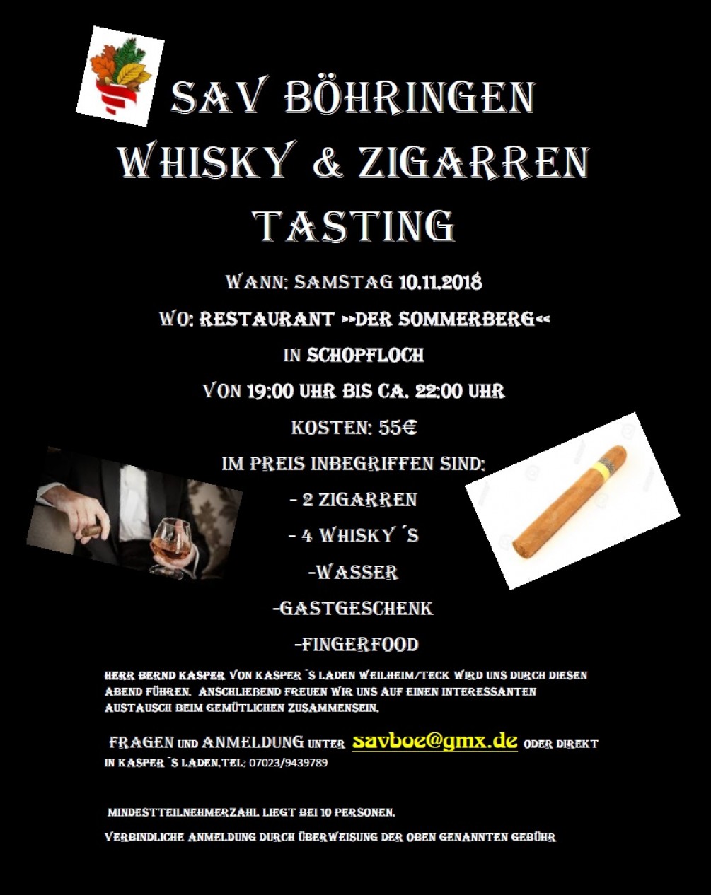 Whisky- und Zigarrentasting Sa., 10.11.2018, Uhrzeit: 19:00 - 22:00 iCalendar Mit dem Laden der Karte akzeptieren Sie die Datenschutzerklärung von Google.Mehr erfahren Karte laden Google Maps immer entsperren zur Übersicht